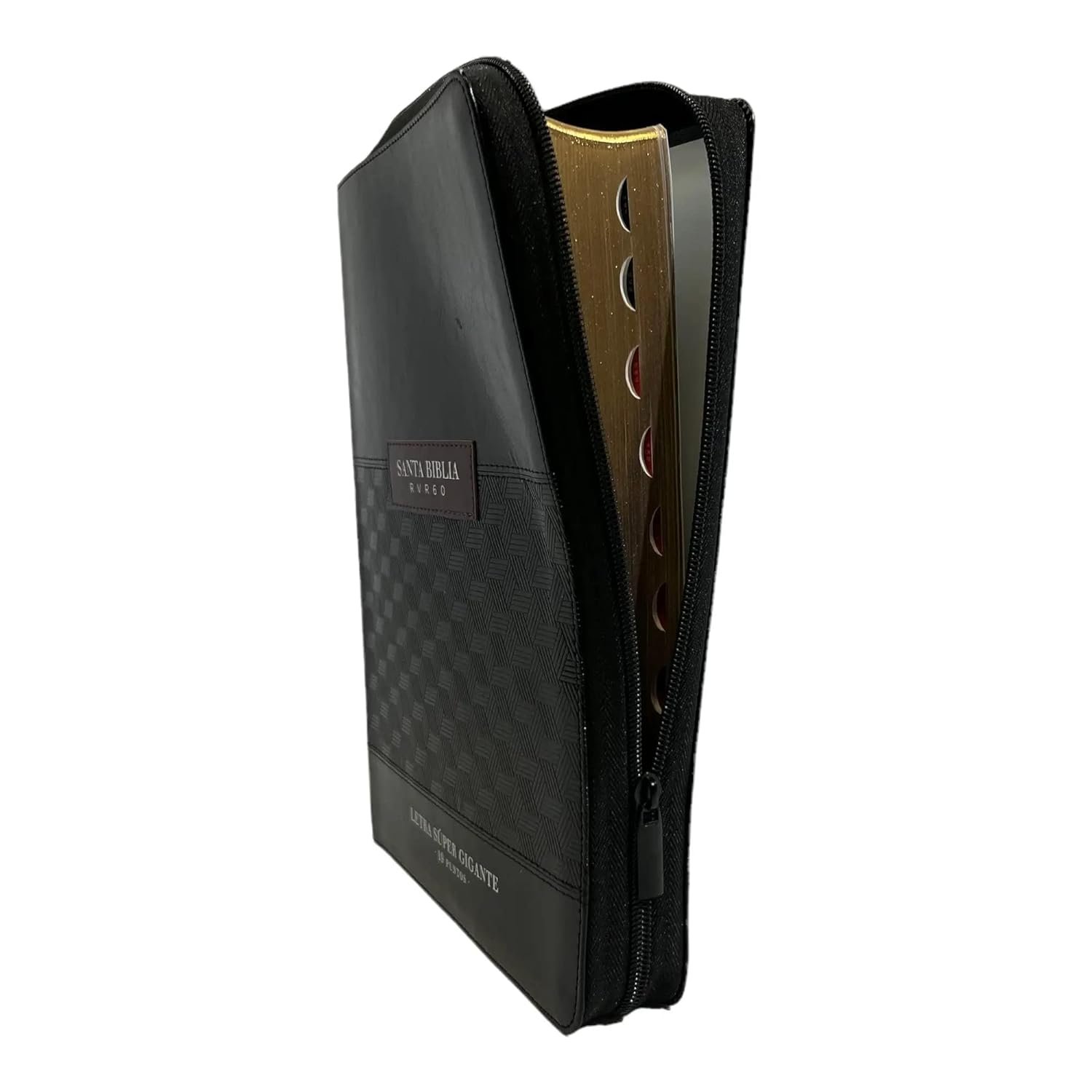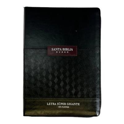 Reina Valera 1960, tamaño Súper Gigante (185×260 mm), Letra súper gigante 19 puntos, Imitación piel , con cierre, con índice, canto dorado, palabras de Jesús en rojo, concordancia , Concordancia de personajes bíblicos. ayudas, referencias cruzadas. 32 páginas a todo color con ayudas y esquemas. 12 mapas a todo color .Letra 19 puntosAdemás, en todas las Biblias de la versión RVR 1960