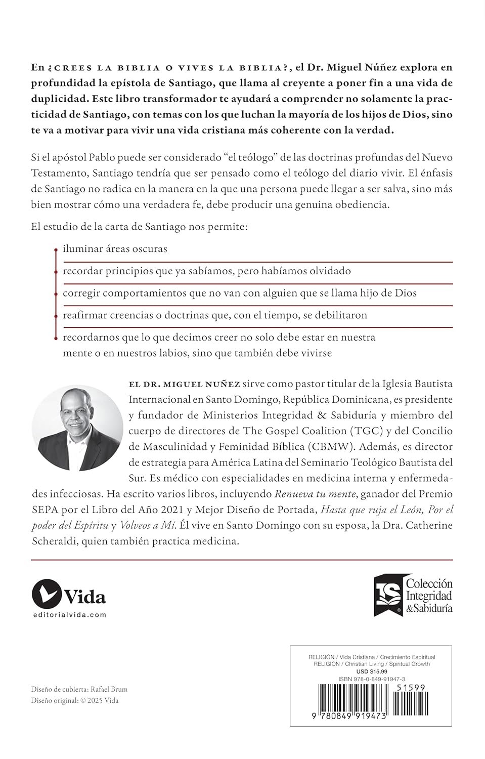 En ¿Crees la Biblia o vives la Biblia?, el Dr. Miguel Núñez explora en profundidad la epístola de Santiago, hermanastro de Jesús y líder de la iglesia de Jerusalén. Este libro te ayudará a comprender que la santificación no es un proceso terapéutico, sino una transformación del Espíritu de Dios a medida que aplicamos la Palabra.