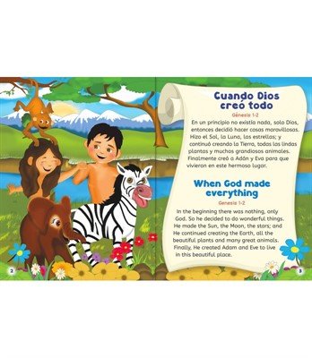 Tiernas y llamativas ilustraciones con breves textos de los relatos más conocidos de la Biblia, adaptados para bebés.